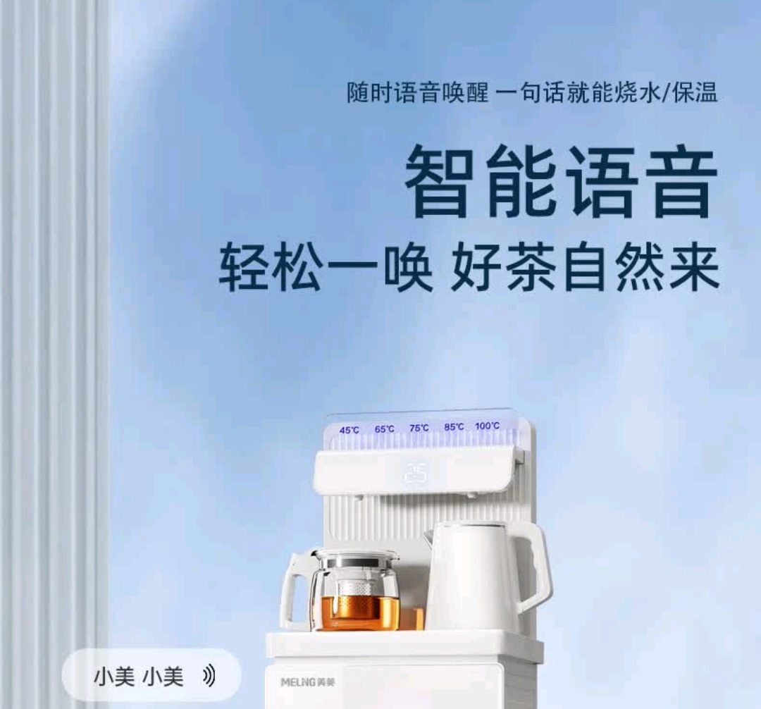 美菱茶吧机智能语音MY-M611新款一键全自动双壶办公室白色饮水机