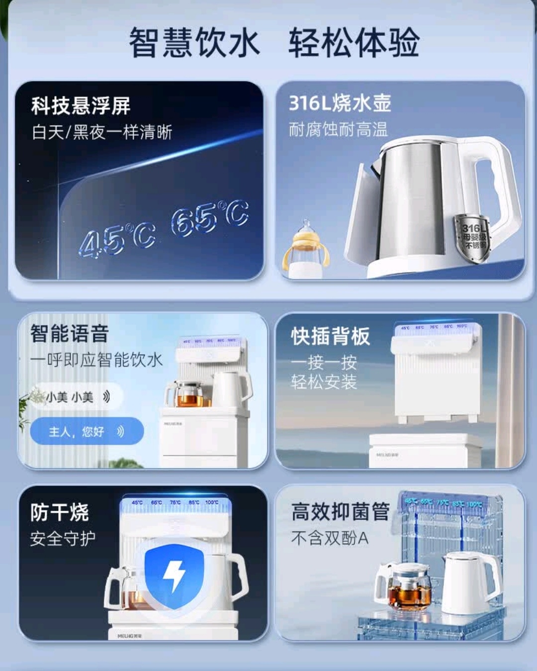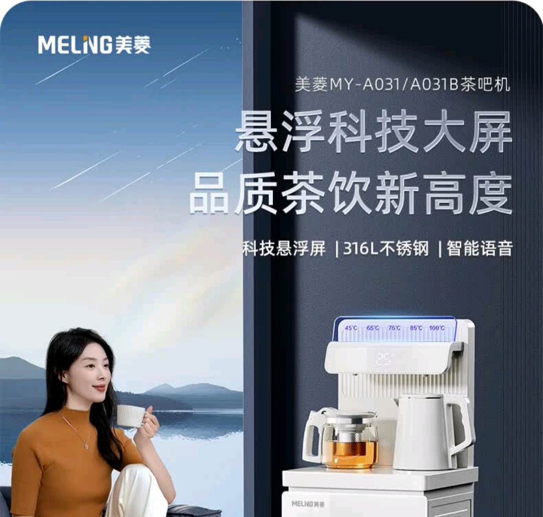美菱茶吧机智能语音家用高端客厅用 316母婴级烧水壶科技悬浮屏立式茶吧柜饮水机一体 国家补贴MY-A031