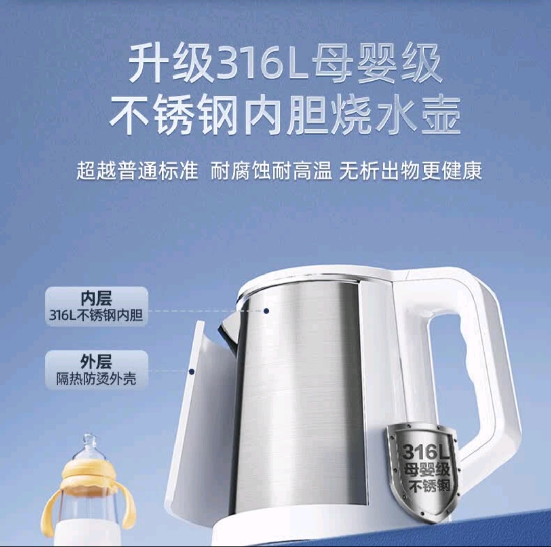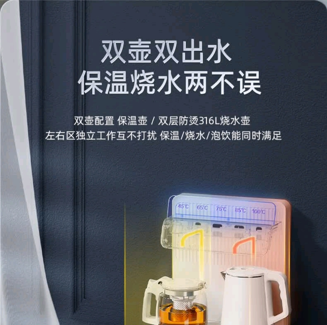 美菱(MeiLing)家用办公室饮水大屏温显多档调温双壶配置304不锈钢水壶防溢防干烧茶吧机饮水机MY-A071