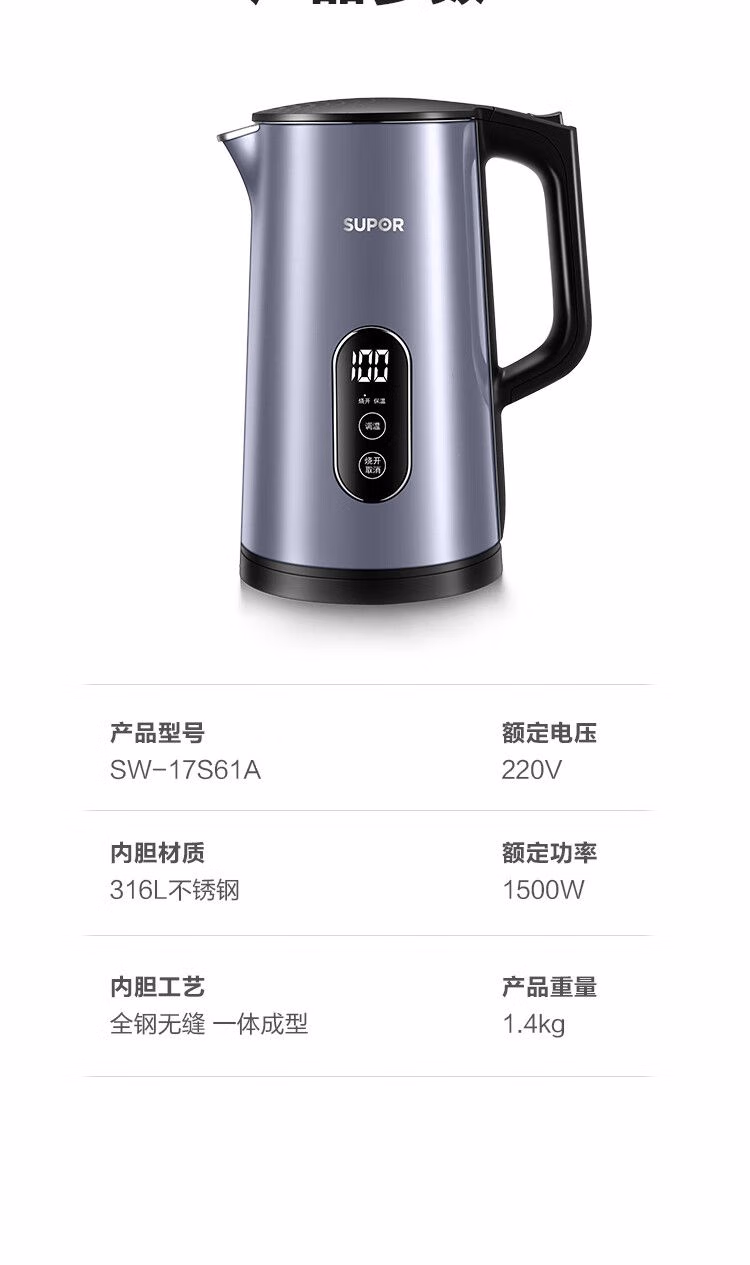 苏泊尔(SUPOR)电热水壶 1.7L SW-17S61A