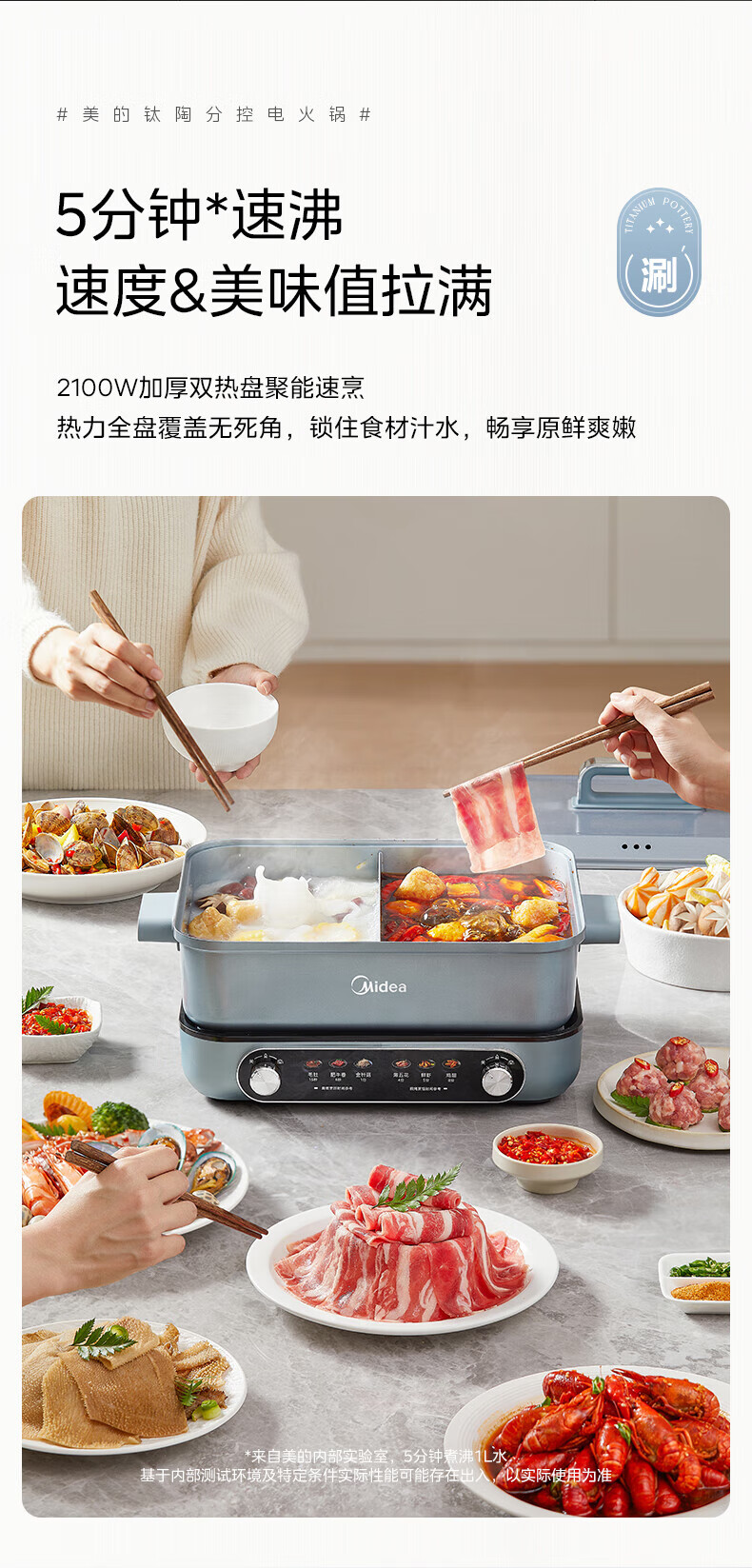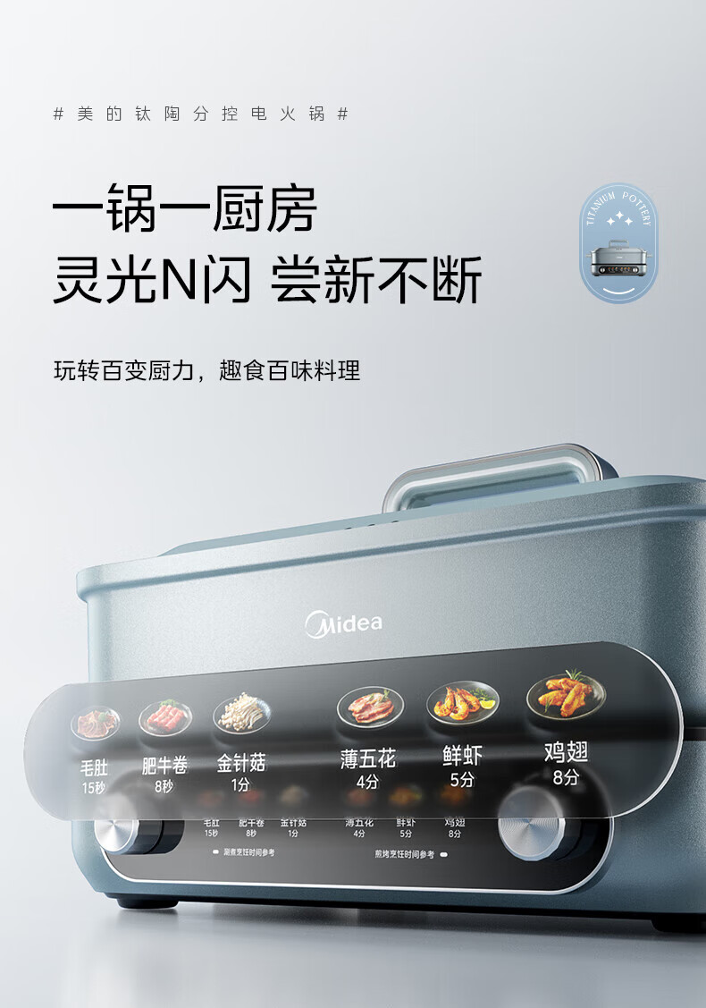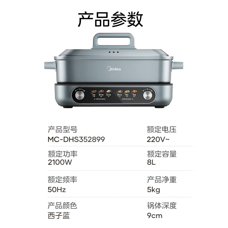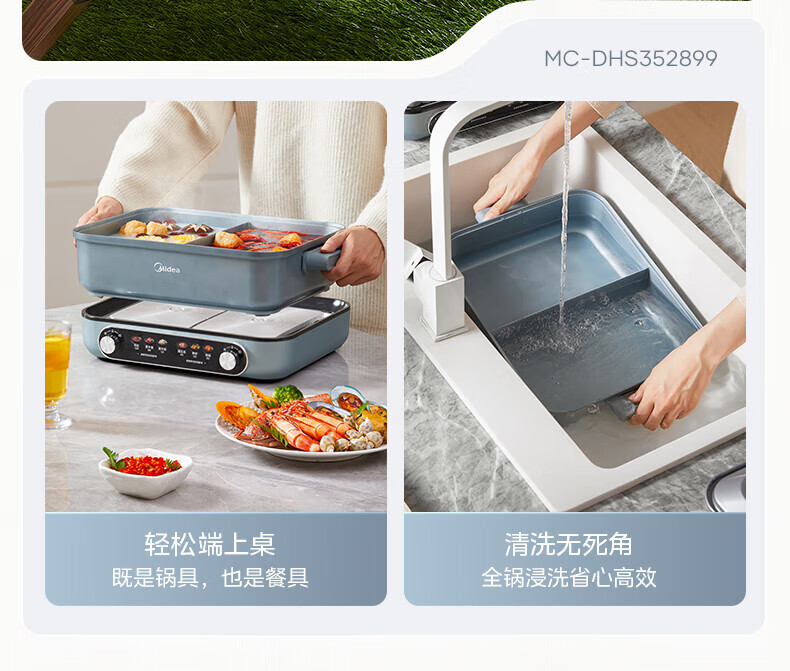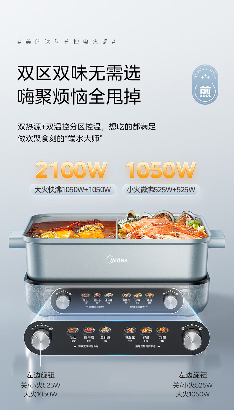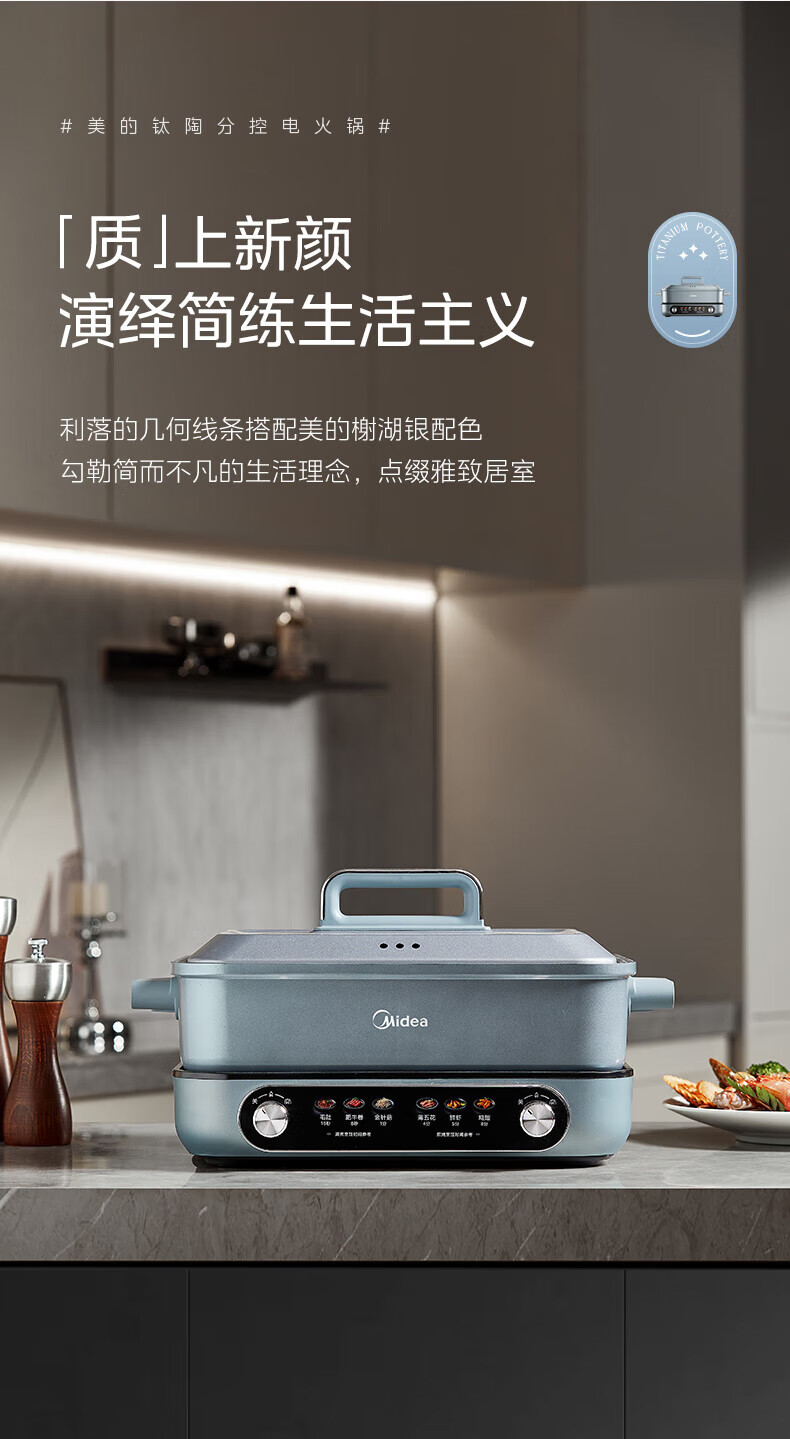 美的(Midea)电火锅 8L分体式速沸鸳鸯锅 钛陶PRO电煮锅 电热锅电炒锅DHS352899