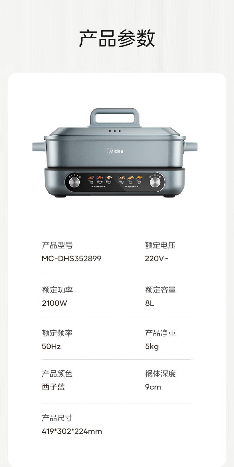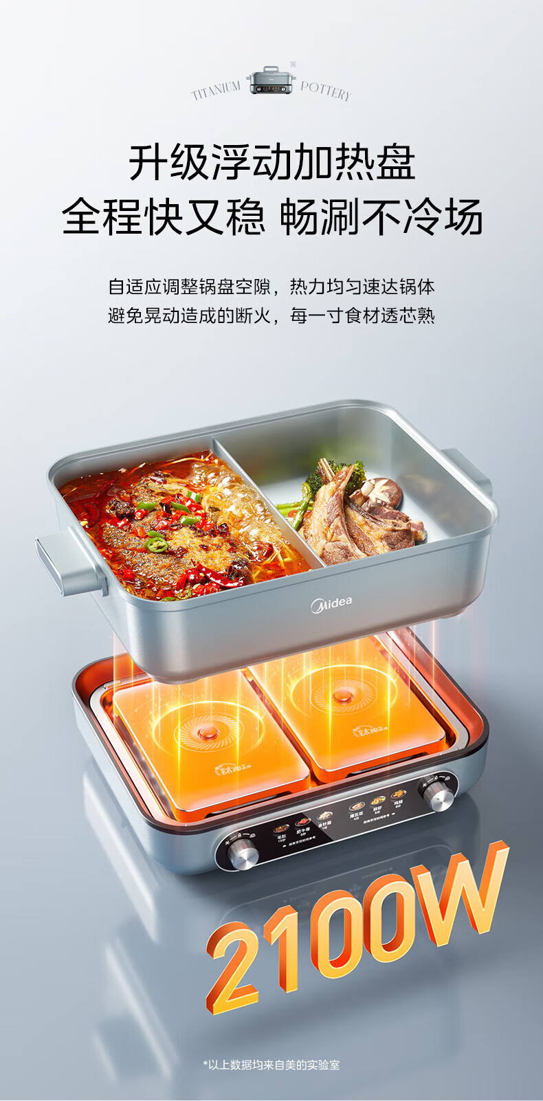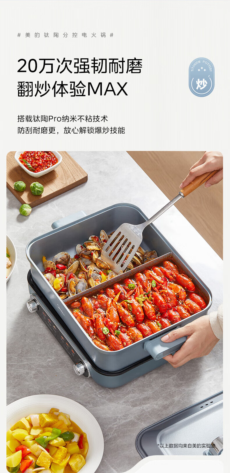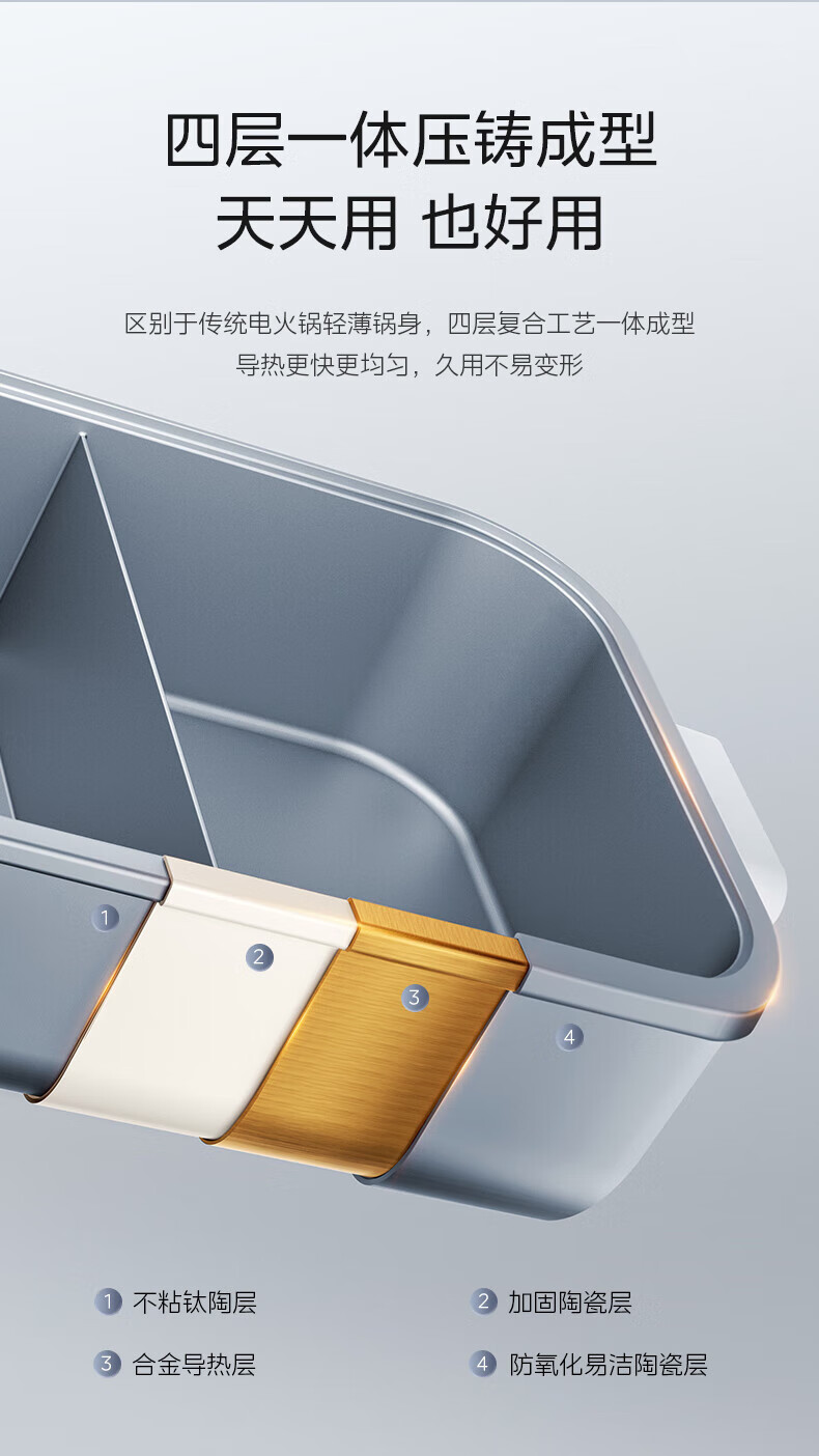美的(Midea)电火锅 8L分体式速沸鸳鸯锅 钛陶PRO电煮锅 电热锅电炒锅DHS352899