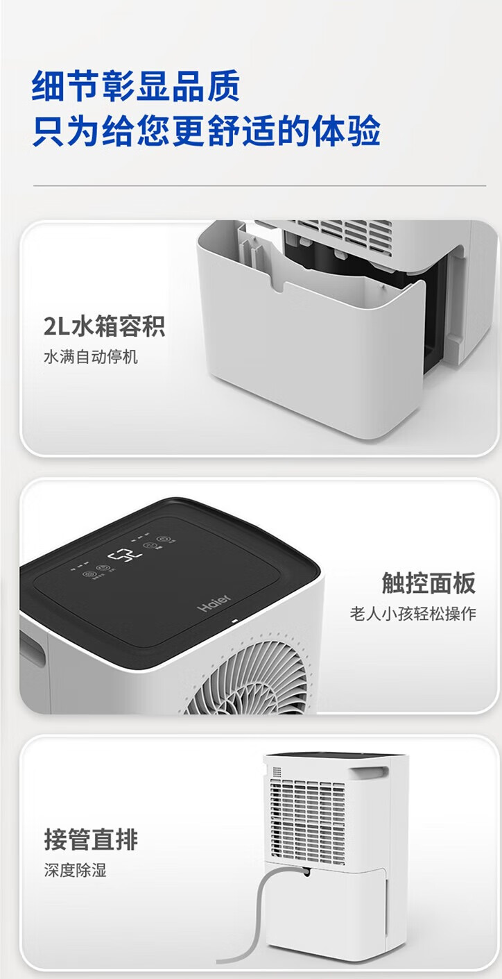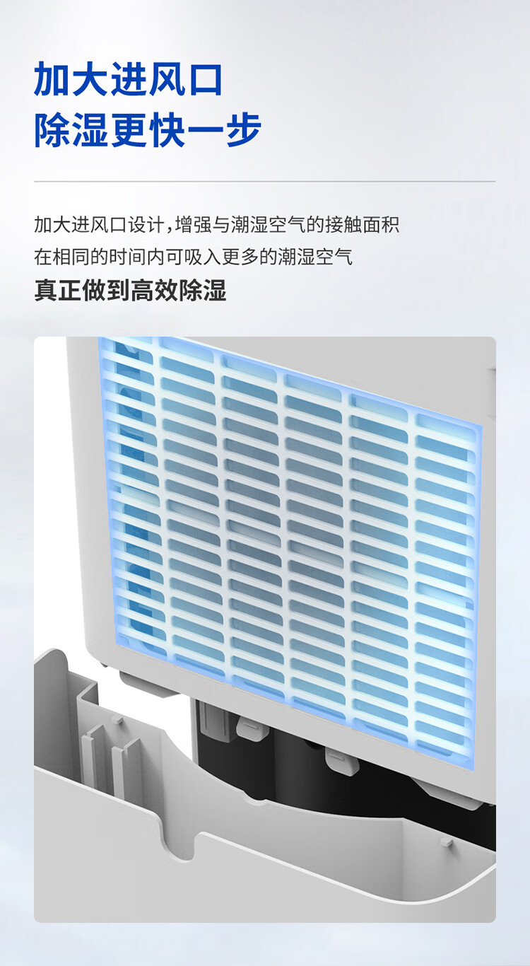 1、 高品质专业压缩机,体积小,动力强,运行稳,噪音低 2、加大进风口设计,除湿更高效 3、三种模式,两档风速,满足不同需求 4、低音降噪,不影响休息 5、下雨天,回南天,干衣不伤衣